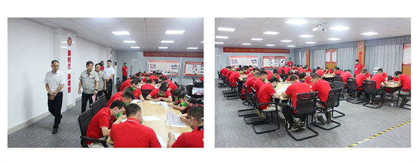 在公司領導的陪同下,賈主席一行巡視指導了理論考試現場。考場組織規范、秩序井然。他囑托大家沉著冷靜,認真思考,精彩作答。