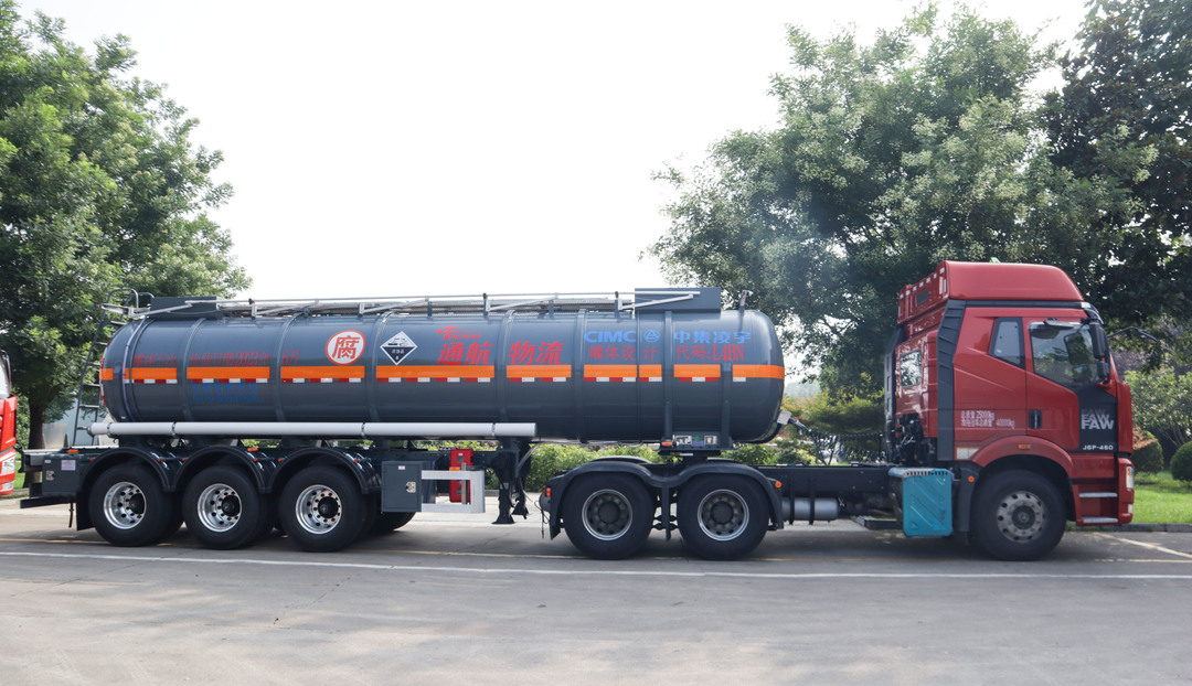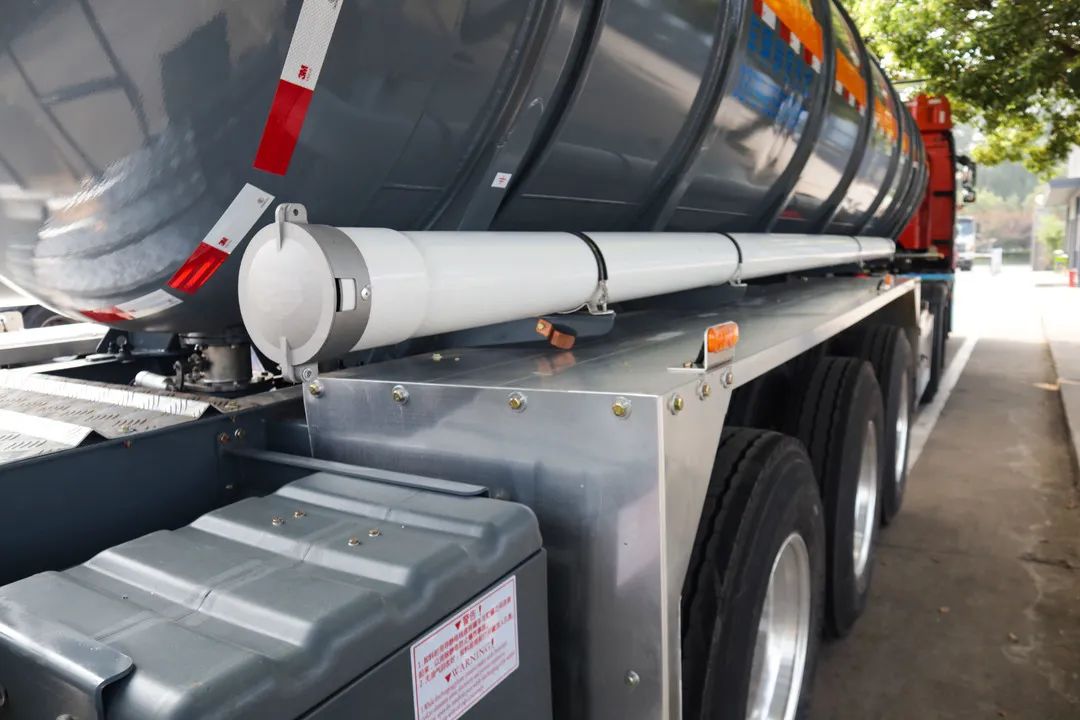 此次交付的腐蝕品液罐采用外加強設計,在保障整車強度的前提下,大大降低整車自重;筒體采用高強度耐腐蝕的不銹鋼板材,堅實耐用;罐內防波板采用裝配式結構,便于清洗及維修;配備安全閥及真空閥,安全有了保障;采用L4高設計代碼,可裝運多種介質,為客戶帶來更多經濟效益!