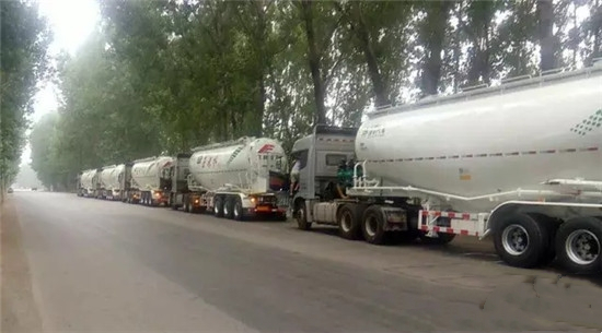 圖中就是西南某地采購的一批20臺粉罐半掛車正在發車;據了解,訂購該批車輛的是凌宇的老客戶,公司老板郭總可以說是凌宇的鐵桿粉絲,2003年采購了批凌宇的散裝單車,在此后的十幾年中,多次采購,但選擇的車輛廠家從未更改,目前該公司已有近100臺罐車,清一色的全是凌宇的。